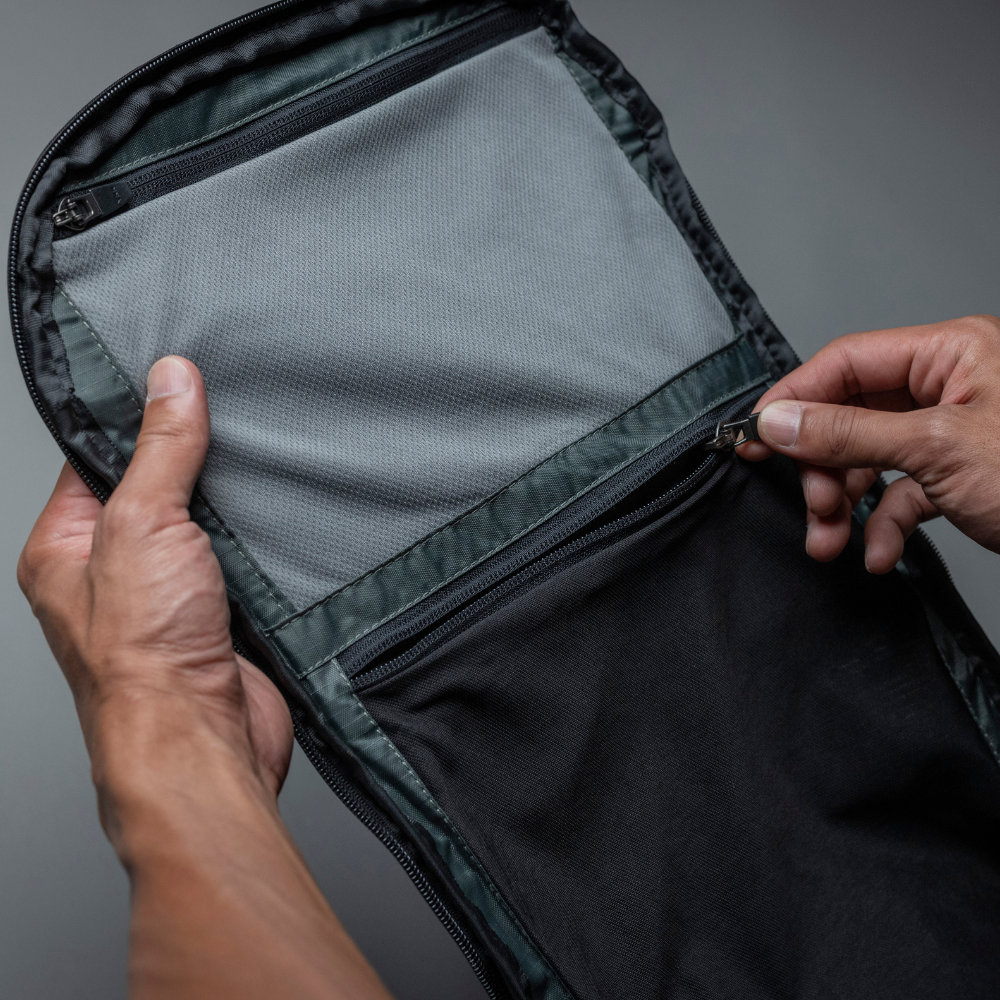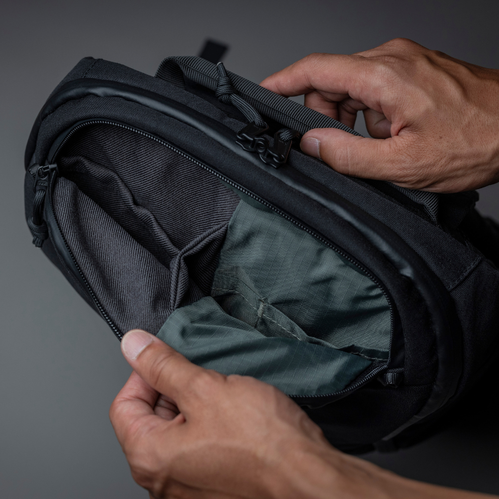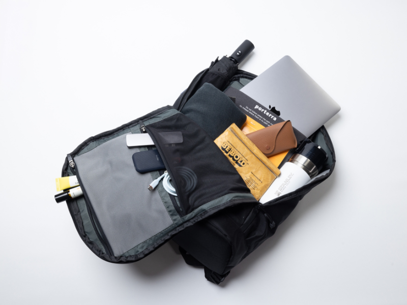 メイン収納部は大きく開閉するフルオープン構造。バックパックをごそごそせずに、必要なものをすぐに取り出すことが可能です。多数のポケットを備えており、荷物を探す悩みから解放されます。